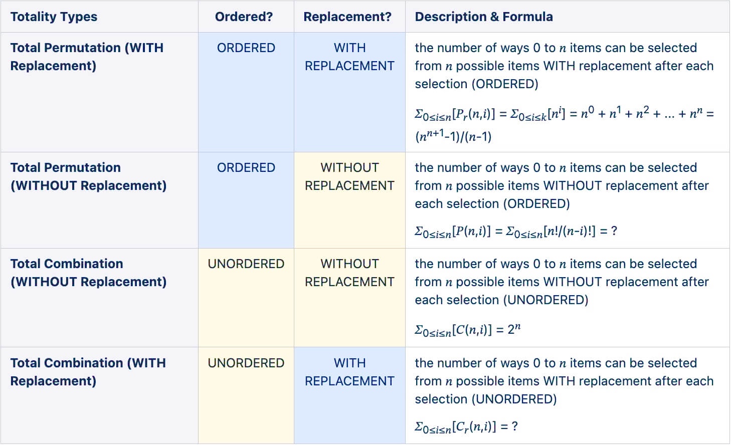 - permutation - refers to the different ways of arranging items from a set of objects, in a sequential order